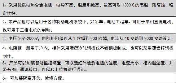電阻器采用大功率的電熱合金制作,線性率好,400℃時(shí)不到2%的變化,****可耐1300℃的高溫,調(diào)整參數(shù)方便。采用耐高溫高壓云母墊片取代容易高溫破裂的絕緣瓷件。